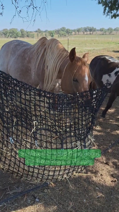 - Cattle or stock with ear tags are cautioned from eating from the hay nets as they may rub their head and potentially remove the ear tags.